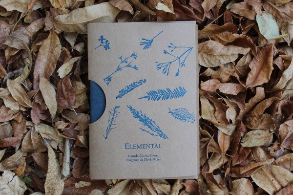 ELEMENTAL son cuatro cuadernos: Poemas de fuego, Poemas de agua, Poemas de tierra y Poemas de aire. Cada uno, invocando un elemento propio, reúne las palabras de Camila García Reyna con las imágenes de Flavia Rojas, reveladas con la técnica de cianotipia. De allí es azul que elegimos como único color para la tinta de este objetolibro.